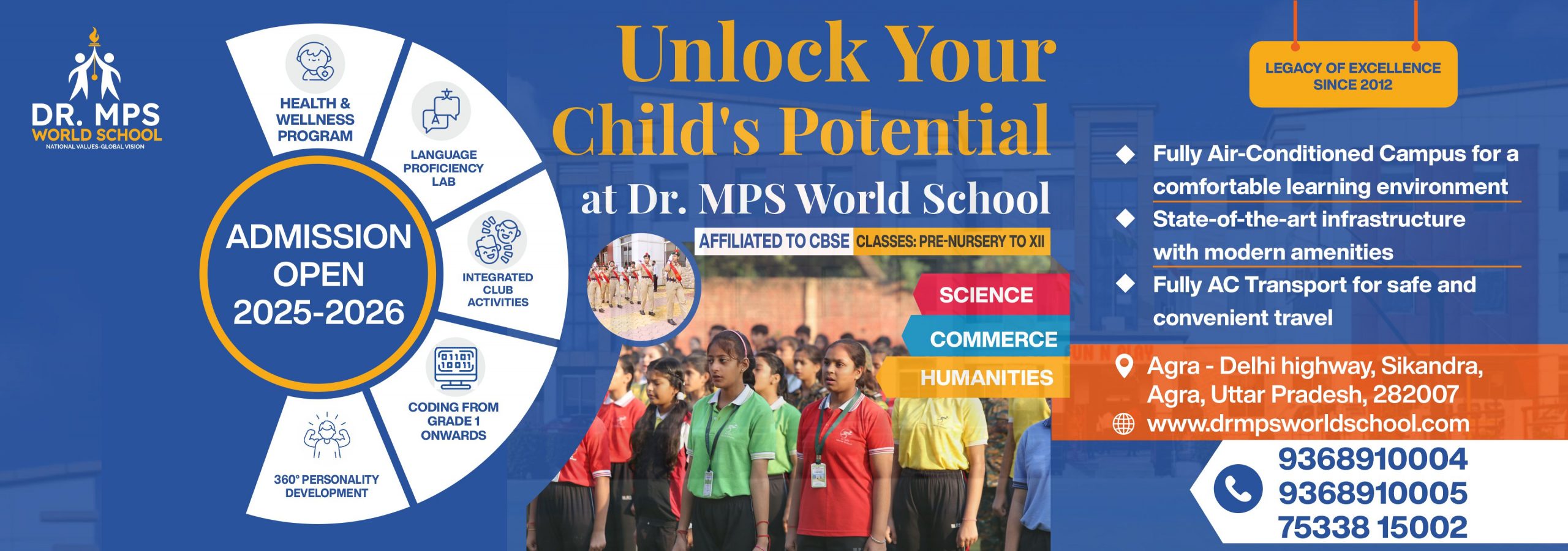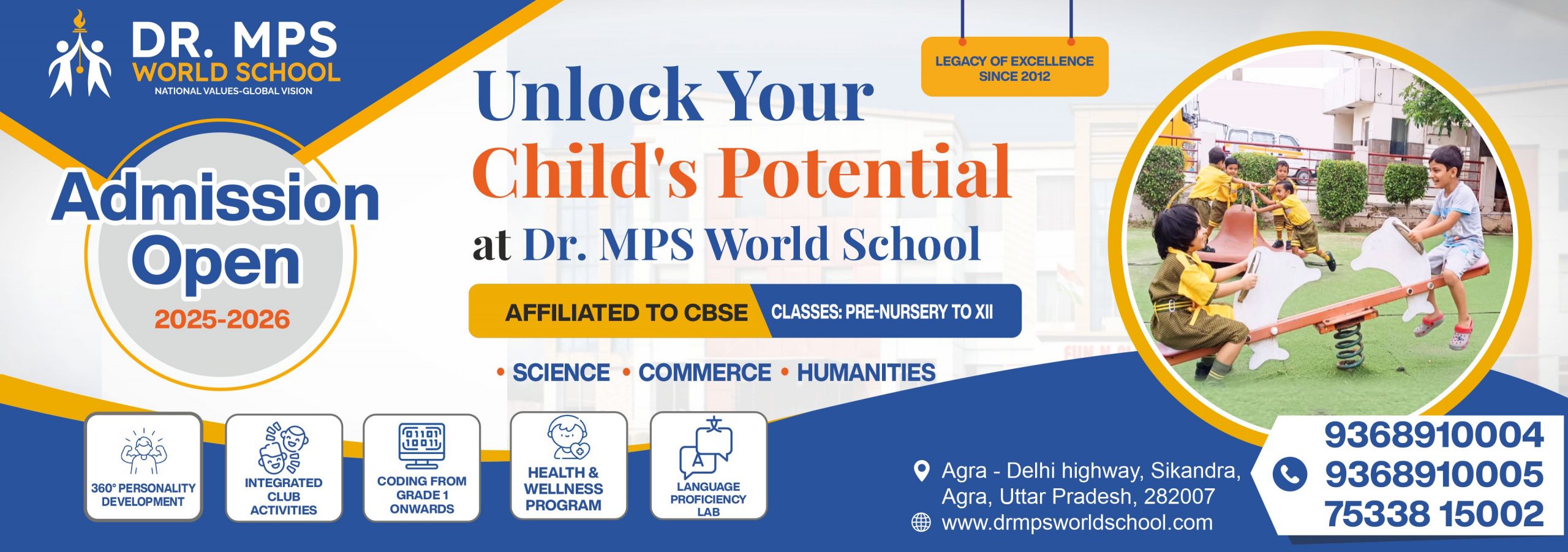 Agra-Delhi Highway Near Naveen Sabji Mandi, Agra - 282007 Phone: 753 381 5001, 936 891 0004 Email: drmpsworldschool@gmail.com